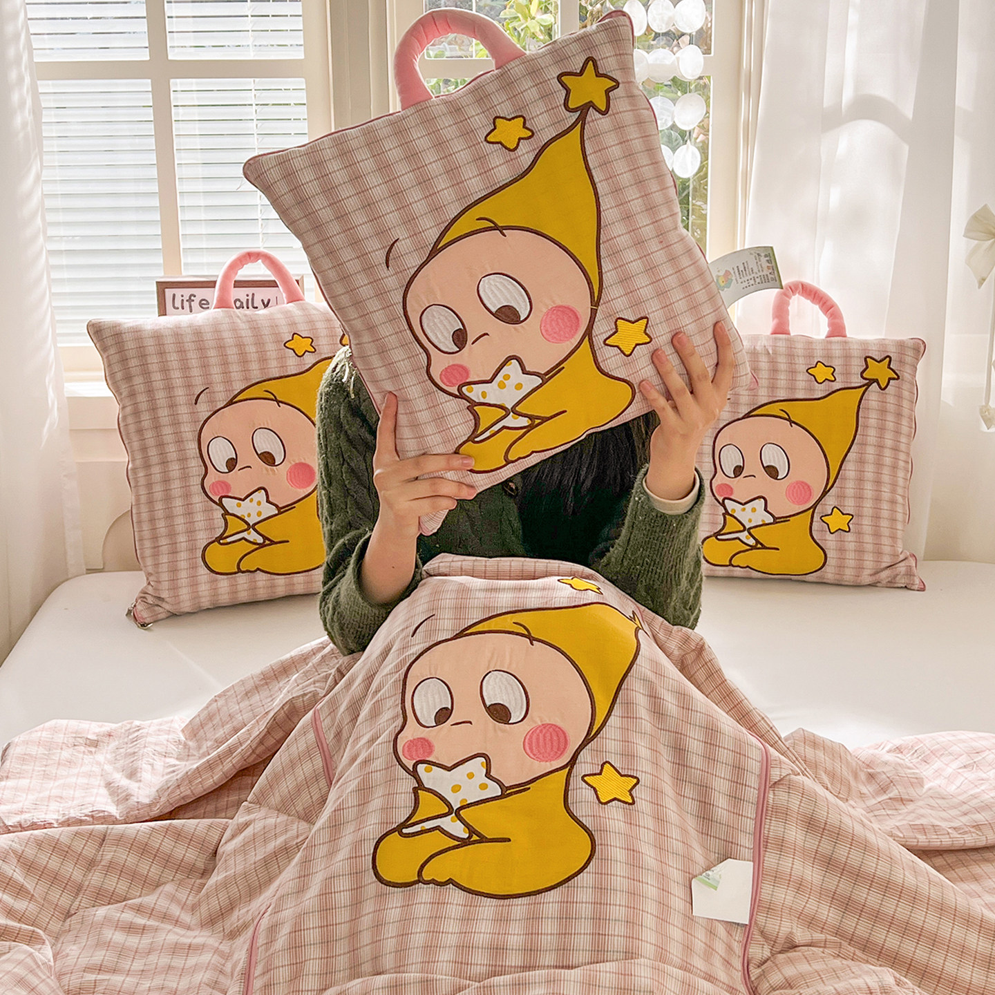 全棉星星人抱枕被子两用汽车折叠靠垫办公室午睡纯棉空调毯二合一