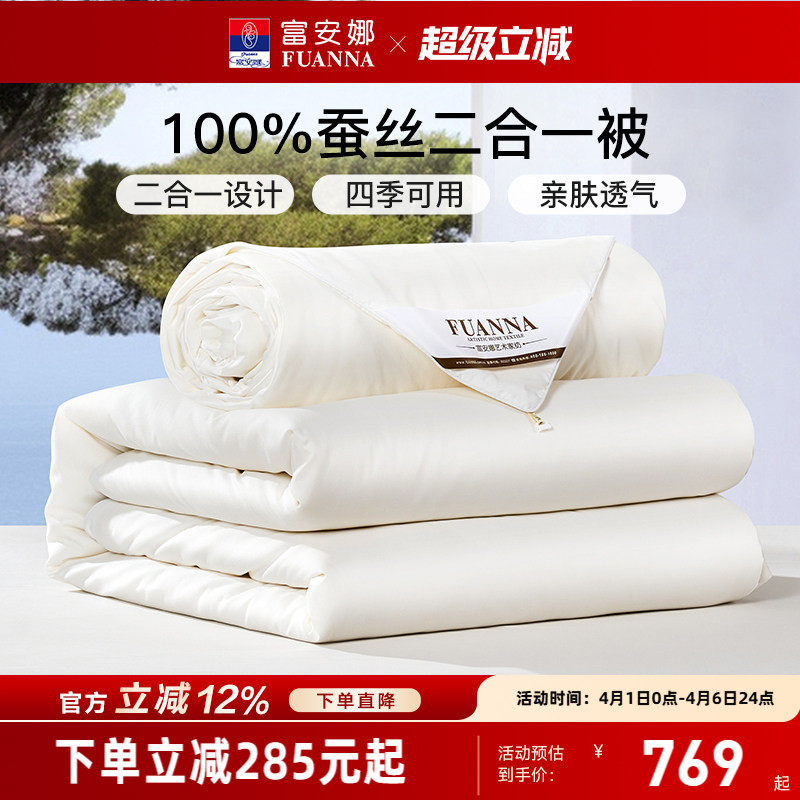 富安娜蚕丝被冬季被芯子母被二合一被四季通用被芯空调被春秋被褥