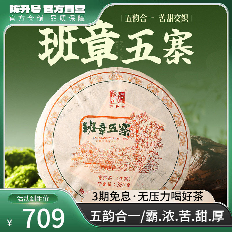2024年陈升号班章五寨普洱茶生茶饼357g云南勐海普洱生茶饼茶茶叶