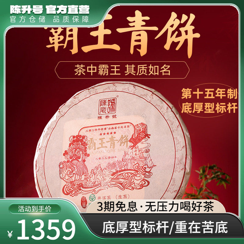2023陈升号霸王青饼357g普洱茶生茶饼云南勐海普洱茶饼生茶叶饼茶