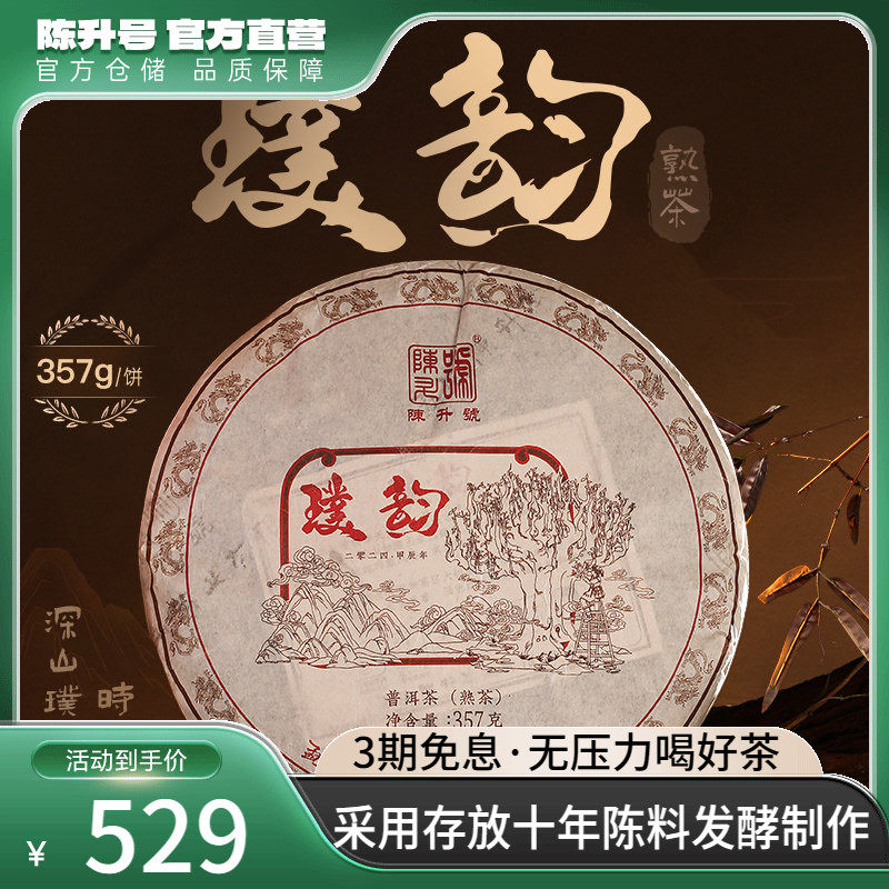 2024年陈升号普洱熟茶璞韵357g云南勐海普洱熟茶陈香浓郁茶饼茶叶