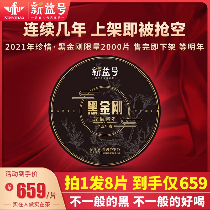 新益号2021春茶珍惜黑金刚古树普洱茶生茶饼357g云南七子饼茶叶