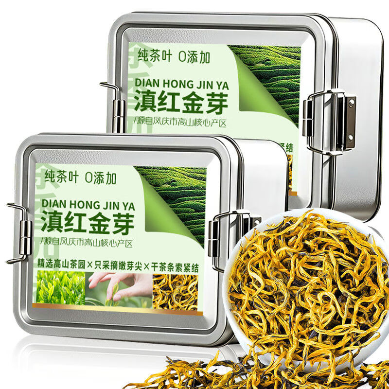 南鸳特级滇红金丝正宗凤庆滇红茶叶2025新茶古树红茶蜜香浓香型100克 特级滇红金丝一大盒100g*2
