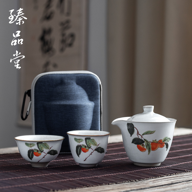 初璞 陶瓷旅行茶具套装窑变一壶四杯带茶叶罐干泡盘便携户外茶具
