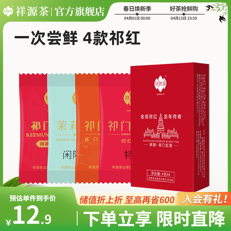 祥源茶 红茶茶叶 祁门红茶特级正宗口粮茶 小包装茶包试喝品鉴 祁红组合装16g