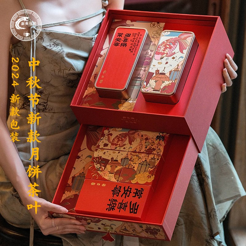 《喜乐》2024中秋节新款茶叶加月饼原创铁罐红茶白茶饼茶通用礼盒