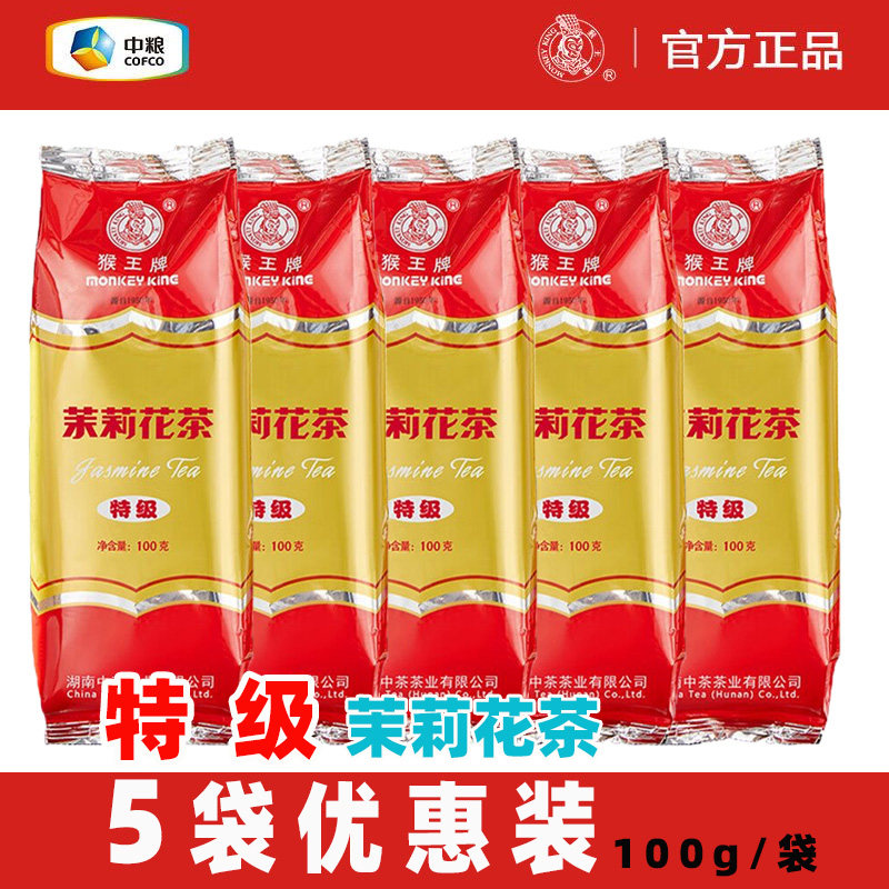 正品中茶猴王茉莉花茶特级100克袋装经典浓香型中粮小特口粮茶叶