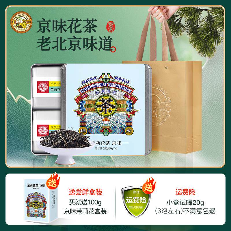 正宗茉莉花茶.京味铁盒装240g礼盒横县茉莉花茶醇香绿茶叶礼