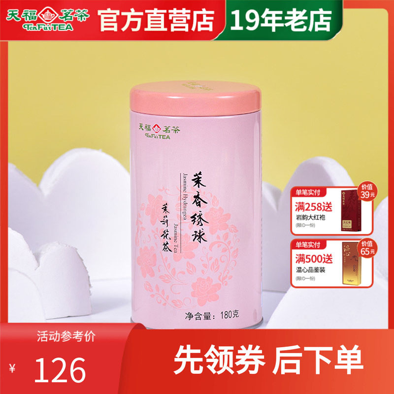 天福茗茶茉香绣球茉莉花茶 浓香型罐装特级茶叶绣球龙珠180g