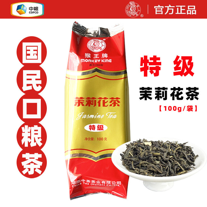 猴王牌茉莉花茶特级100g浓香型绿茶老式口粮茶小特茶叶中粮正品