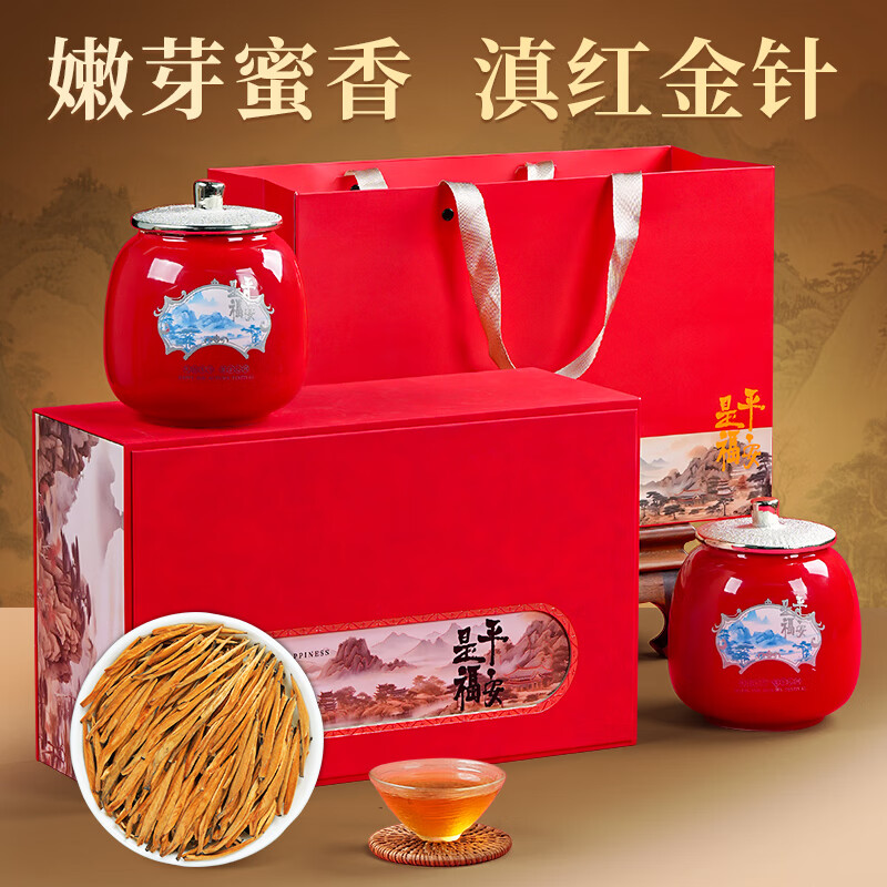 安纯云南凤庆滇红茶2025新茶古树大金针金螺特级金芽蜜香嫩芽茶叶礼盒 200g滇红金针嫩芽蜜香【高端礼盒送礼】