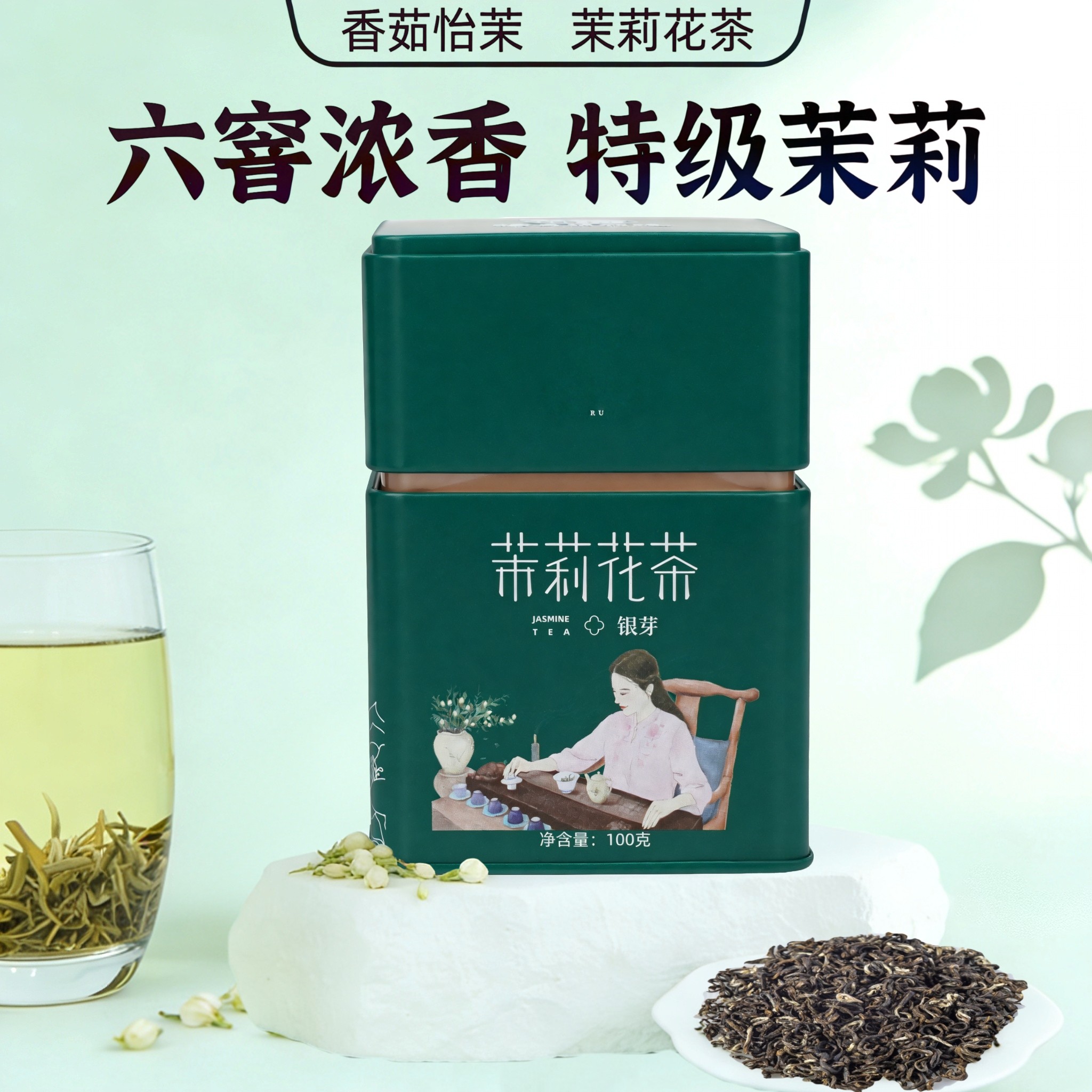 香茹怡茉新茶横县茉莉花茶茉莉银芽特级茉莉花茶100g三节罐装
