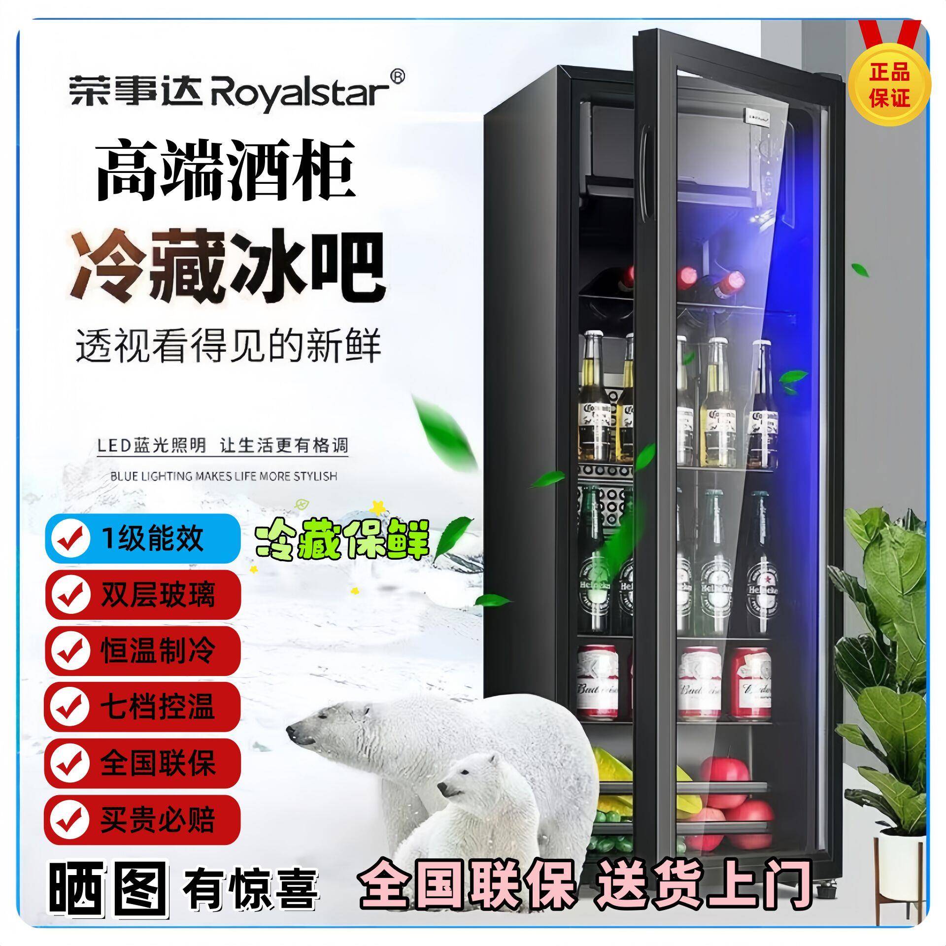荣事达冰吧家用小型冷藏柜商用办公室饮料茶叶红酒透明冰箱网红
