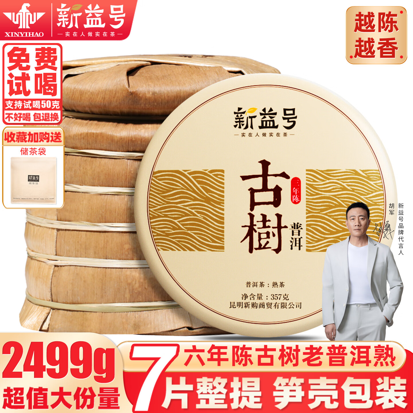 新益号老班章冰岛普洱茶熟茶10年以上古树茶云南勐海七子饼熟普茶叶礼盒 爆款【六年布朗熟】7片整提2499g
