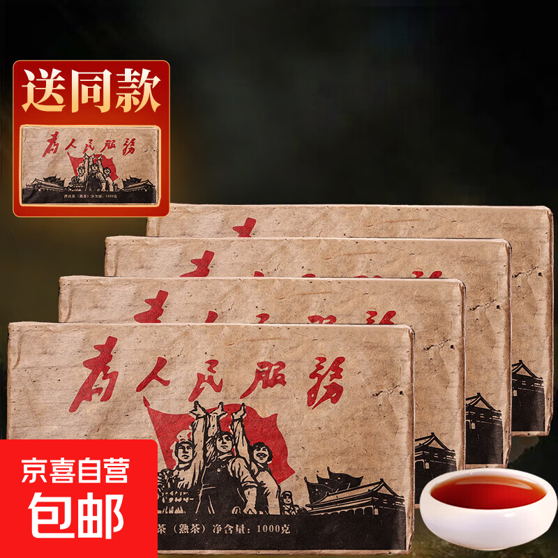 90年代老熟茶云南古树茶叶普洱熟茶砖十年以上老茶自己喝收藏送礼 1kg*5砖(买4送1)