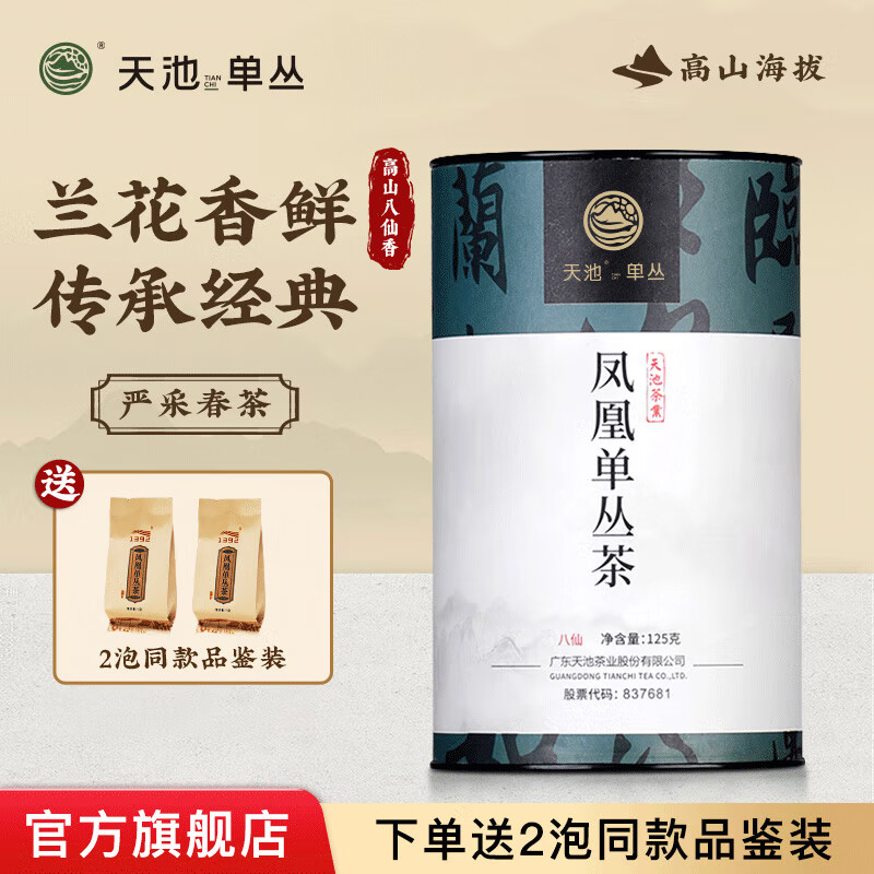 天池凤凰潮州单枞茶八仙单丛茶叶乌龙茶高山乌岽茶罐装125g中秋节送礼
