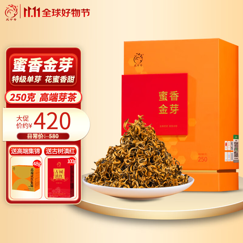凤宁号红茶蜜香金芽特级凤庆滇红茶云南高档滇红金芽茶送礼新茶叶自己喝 盒装250g