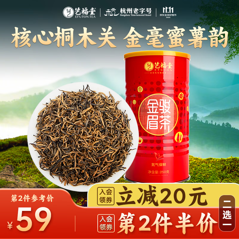 艺福堂 茶叶红茶 金骏眉特级 武夷山原产桐木关浓香型高档工夫红茶 特级金骏眉250g/罐