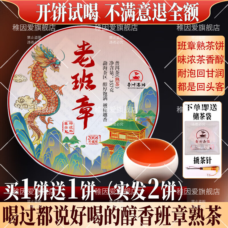 信盛堂普洱茶熟茶特级眫|东|来茶叶店同款老班章古树七子饼10年以上357g 714g (到手2饼) 实收2饼(活动期间买一饼送一饼,实发2饼)