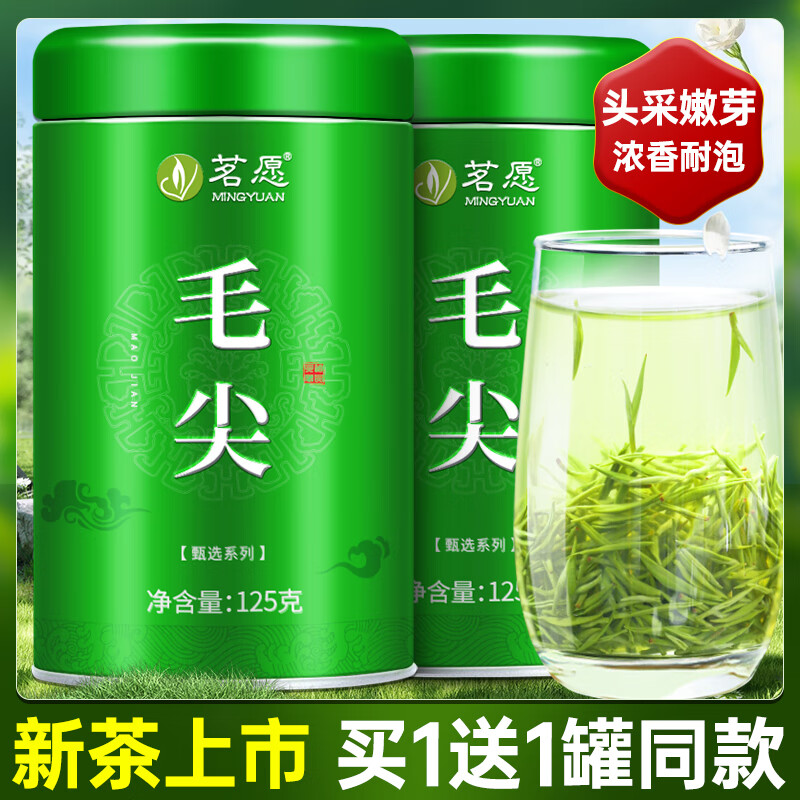 茗愿毛尖绿茶 2025新茶叶特级明前头春茶浓香型高山嫩芽自己喝送礼装 【 125g*2罐 共半斤赠礼袋】 【特级绿茶礼盒】