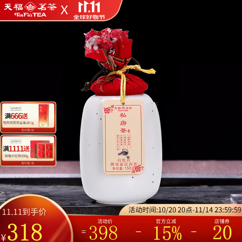 天福茗茶 私房茶正宗福鼎白牡丹白茶茶叶掰块散茶罐装茶叶礼盒
