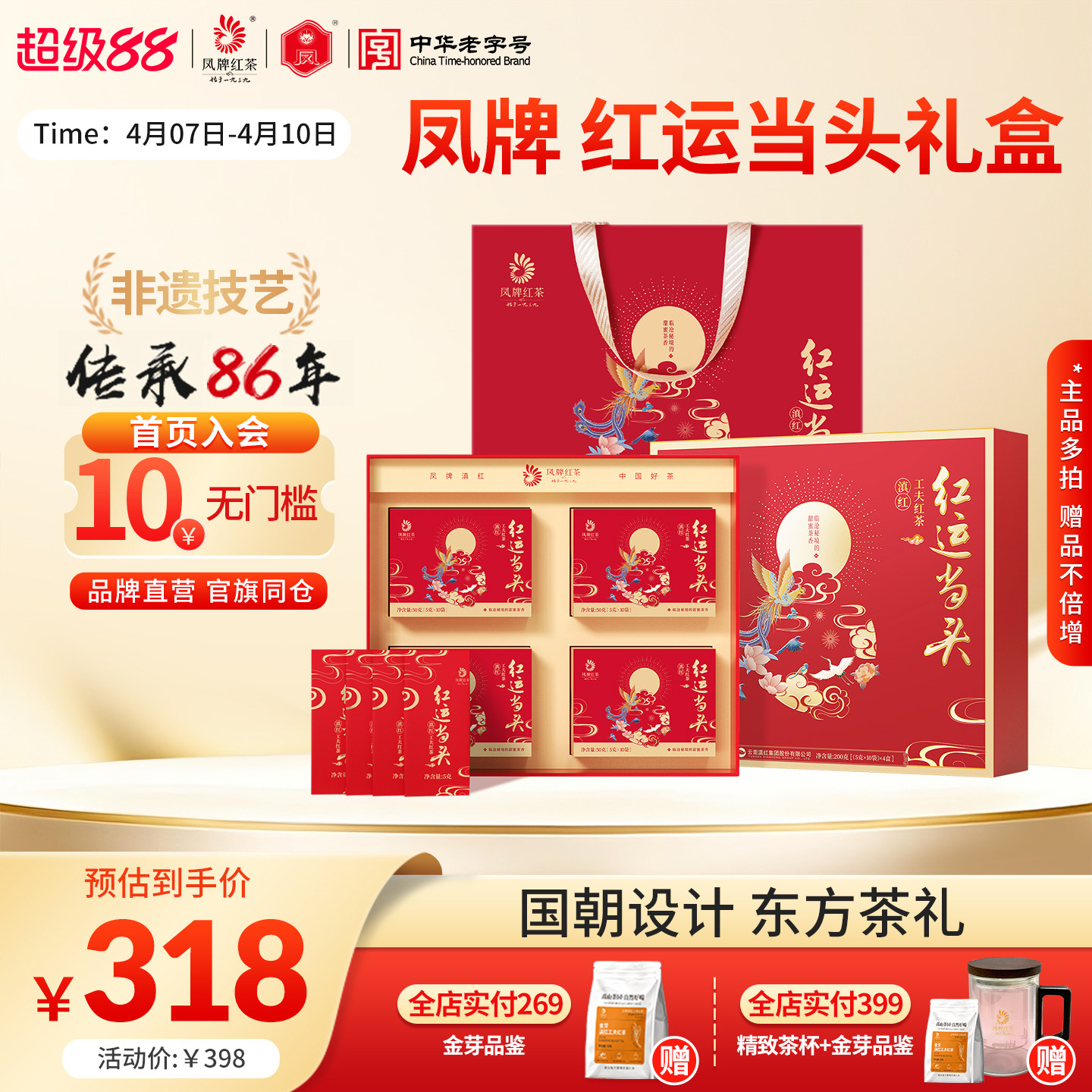 【新品】凤牌红茶正宗滇红礼盒红运当头特级云南茶叶200g节日送礼