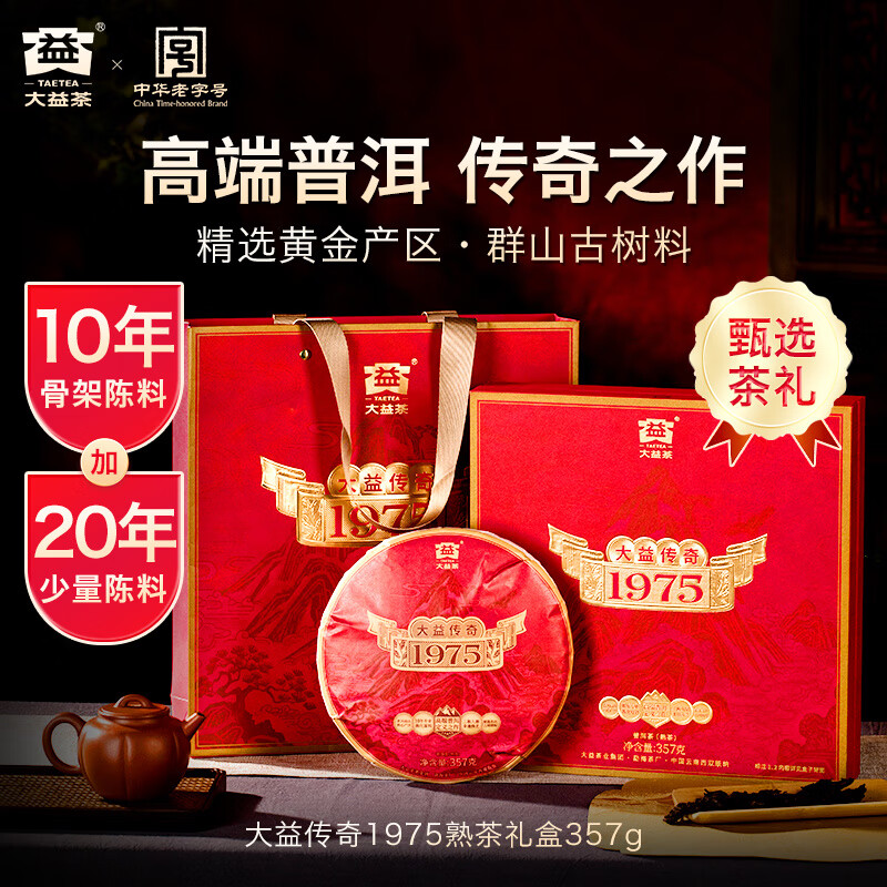大益【高端普洱】大益传奇1975 普洱茶 年份普洱 茶叶礼盒 10年陈熟饼茶357g