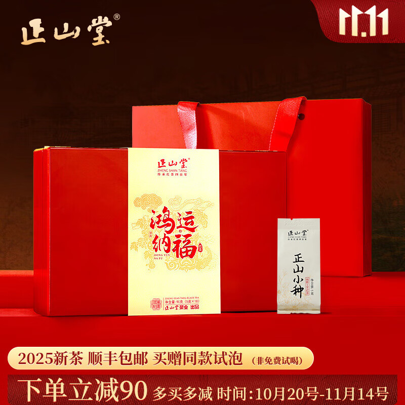 正山堂正山小种红茶特级 茶叶礼盒装 鸿运纳福2025新茶武夷山桐木关送礼 90g