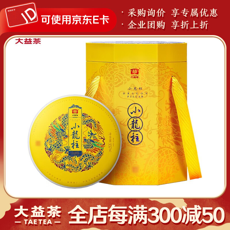 大益茶叶 普洱茶 熟茶 小龙柱 357g/饼 皇茶系列饼茶 2023年5饼一提装
