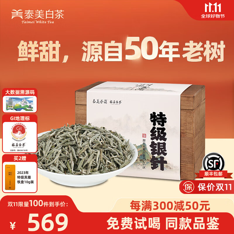 泰美茶镇福鼎白茶白毫银针特级 正宗磻溪深山老树礼盒装茶叶送礼 【福利价·限购2件】2024年特级银针 400g*1盒