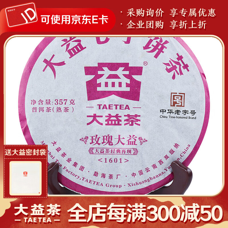 大益茶叶 普洱茶 熟茶 2016年玫瑰大益 普饼 357g/饼 一饼装
