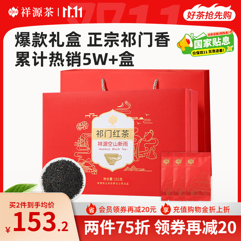 祥源茶 空山新雨祁门红茶 特级正宗浓香祁红工夫茶伴手礼 节日送礼茶叶 礼盒装192g