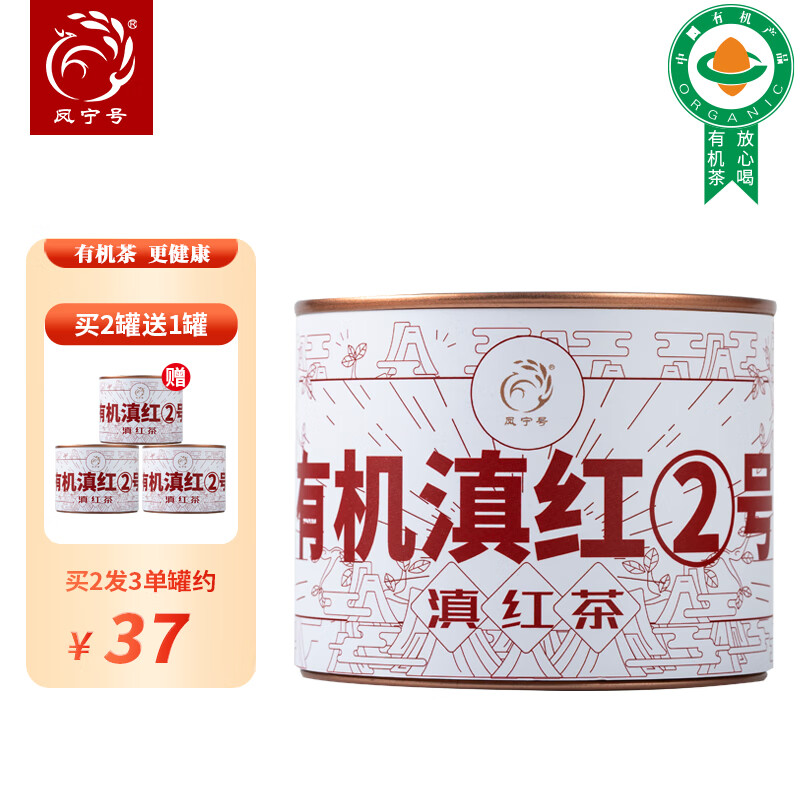 凤宁号红茶有机滇红2号滇红茶云南凤庆有机滇红茶蜜香型口粮茶叶自己喝 单罐装50g