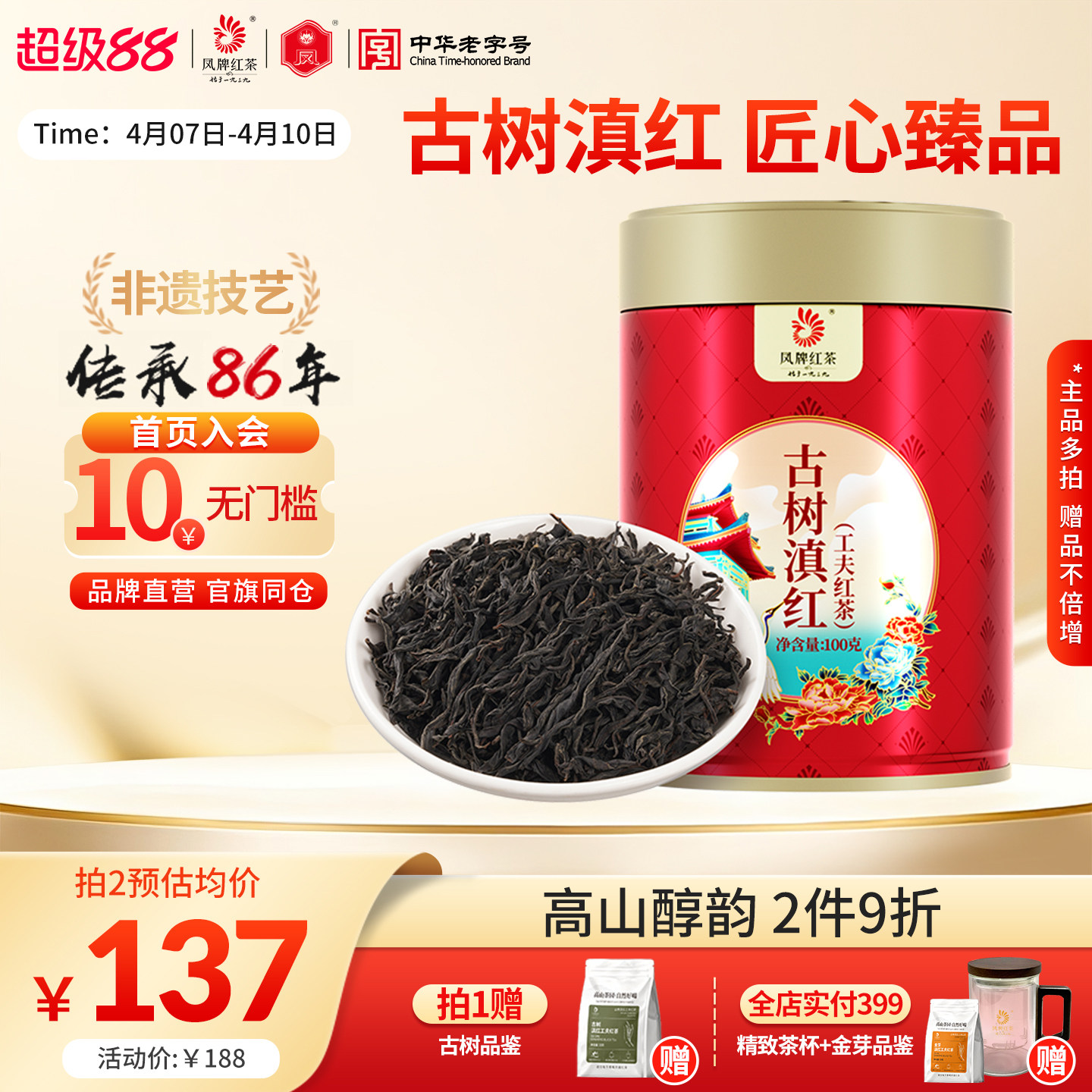 凤牌红茶正宗滇红夜宴图工夫金芽茶100g特级浓香云南茶叶老字号