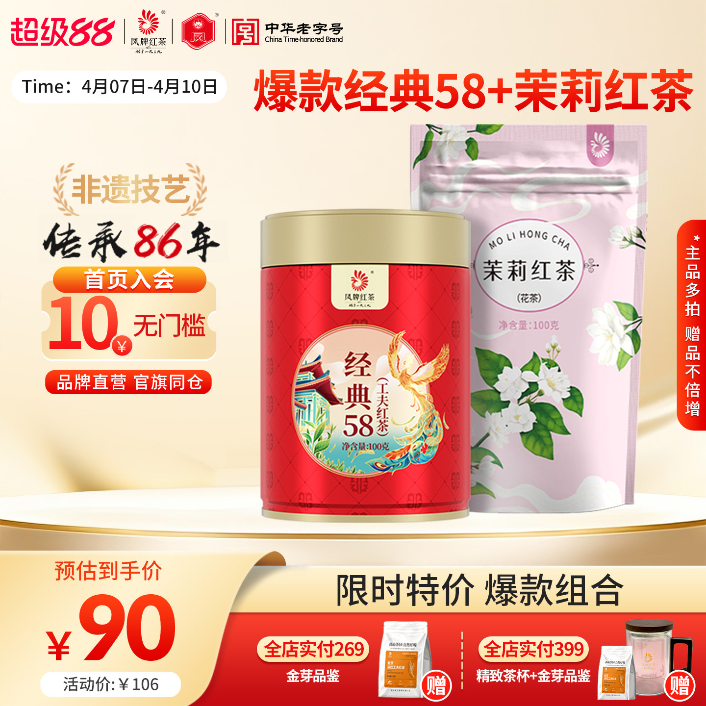 【爆款组合】凤牌红茶正宗滇红经典58+茉莉花香红茶云南凤庆茶叶