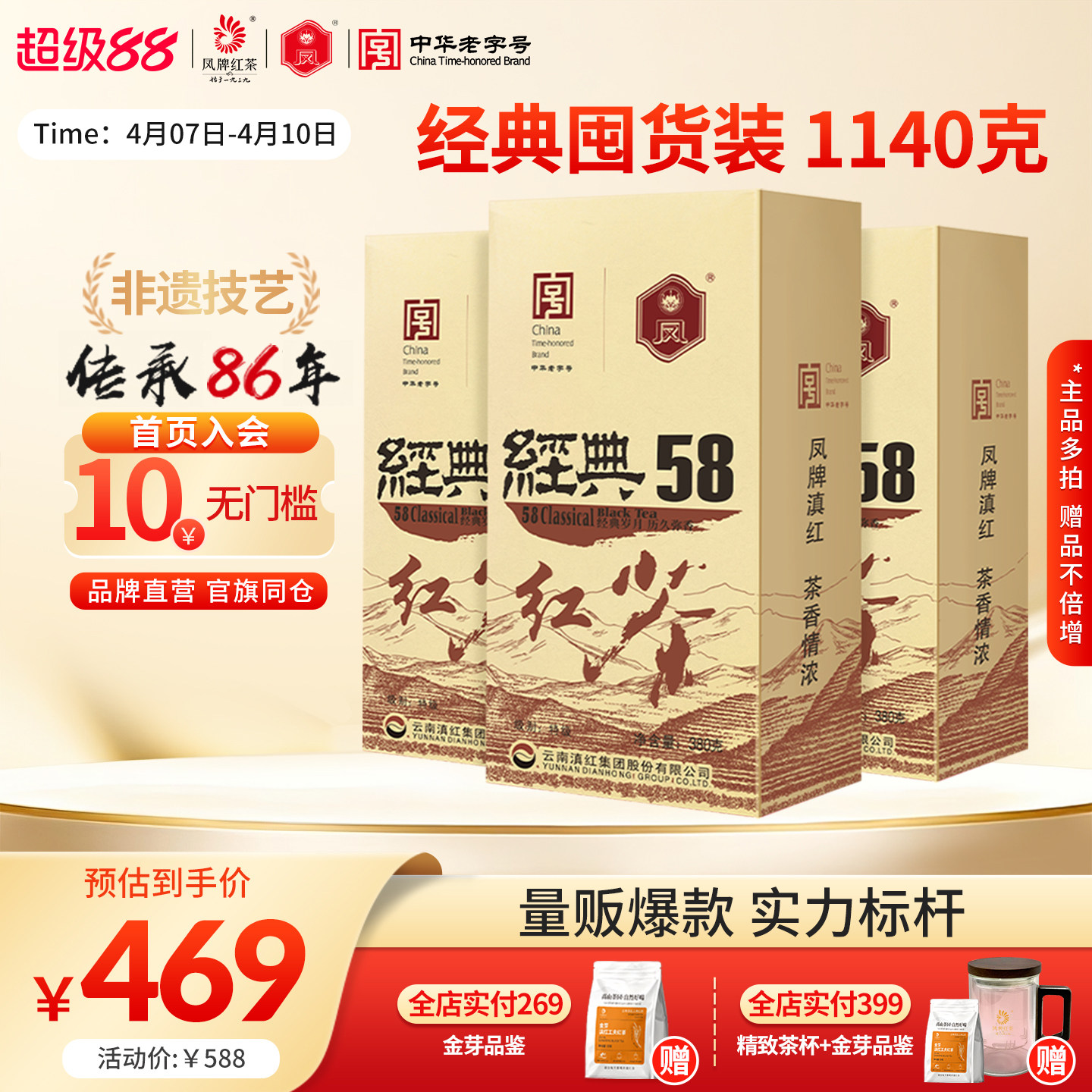 凤牌经典58滇红茶云南凤庆正宗滇红茶特级浓香型工夫红茶袋装茶叶