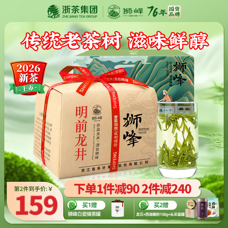 狮峰 2026新茶 明前特级龙井茶叶绿茶春茶 纸包装250g赠西湖藕粉