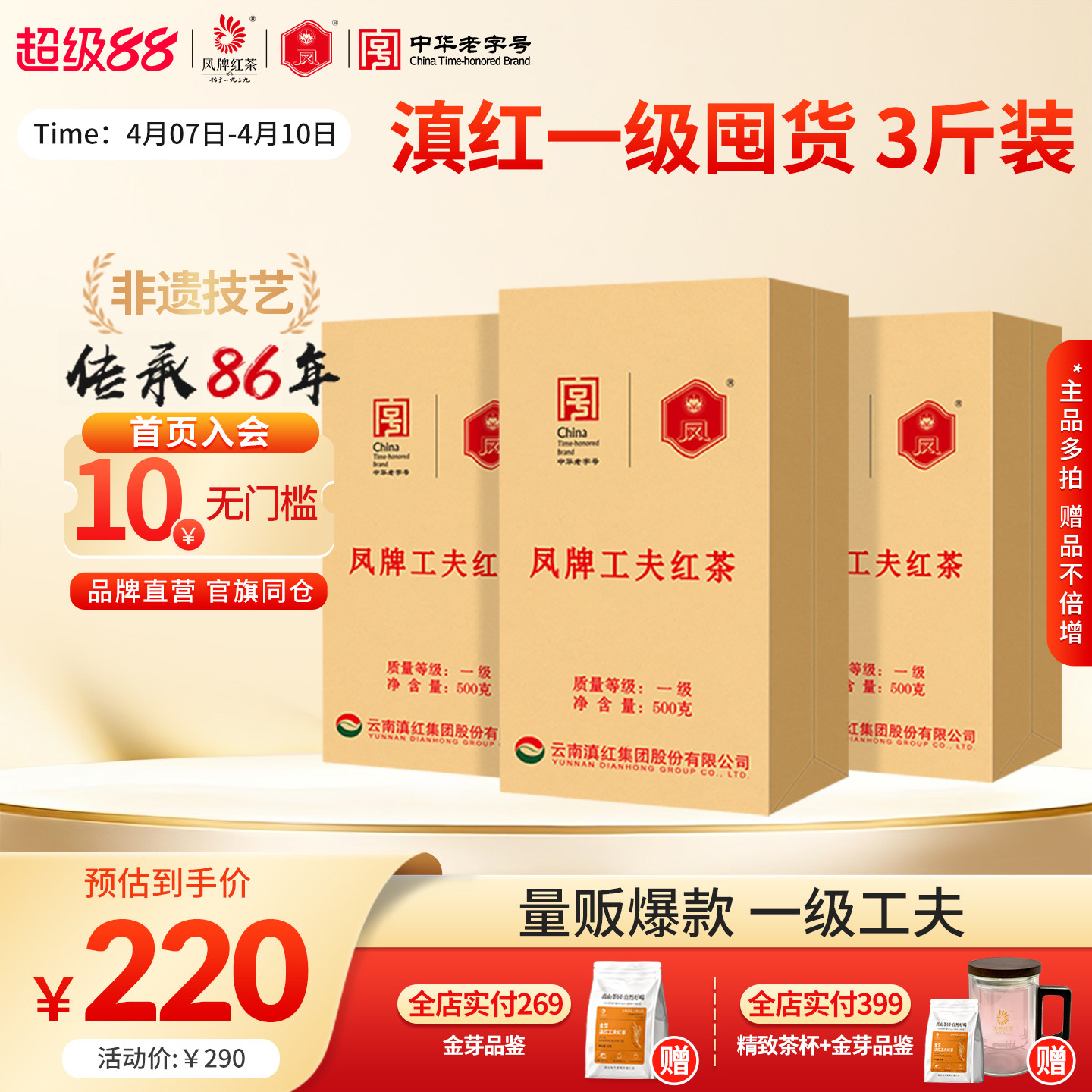 【滇红一级 3斤】凤牌红茶正宗云南滇红一级工夫茶叶500g*3袋囤货