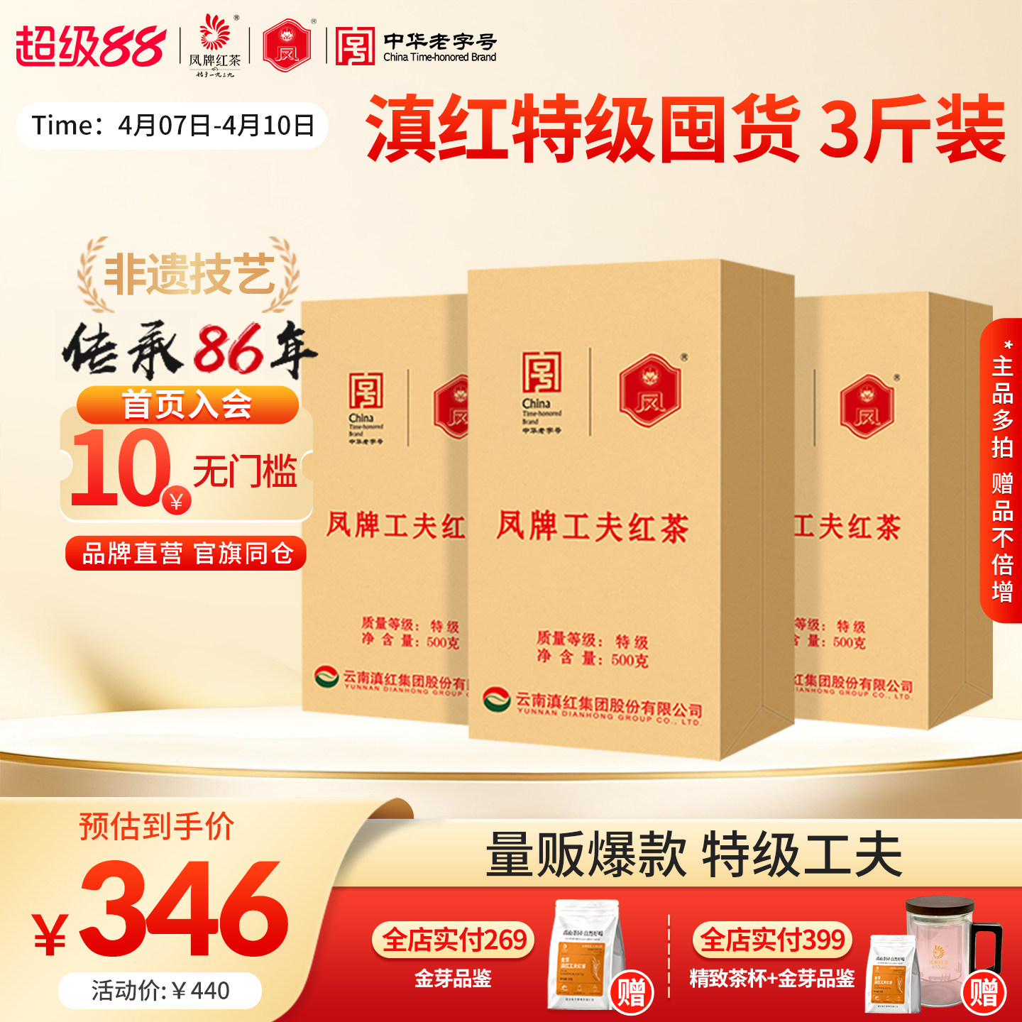 【滇红特级 3斤】凤牌红茶正宗云南滇红特级工夫茶叶500g*3袋囤货