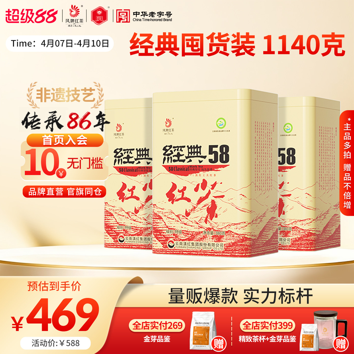凤牌红茶经典58滇红茶云南正宗滇红茶特级浓香工夫红茶圆罐装茶叶