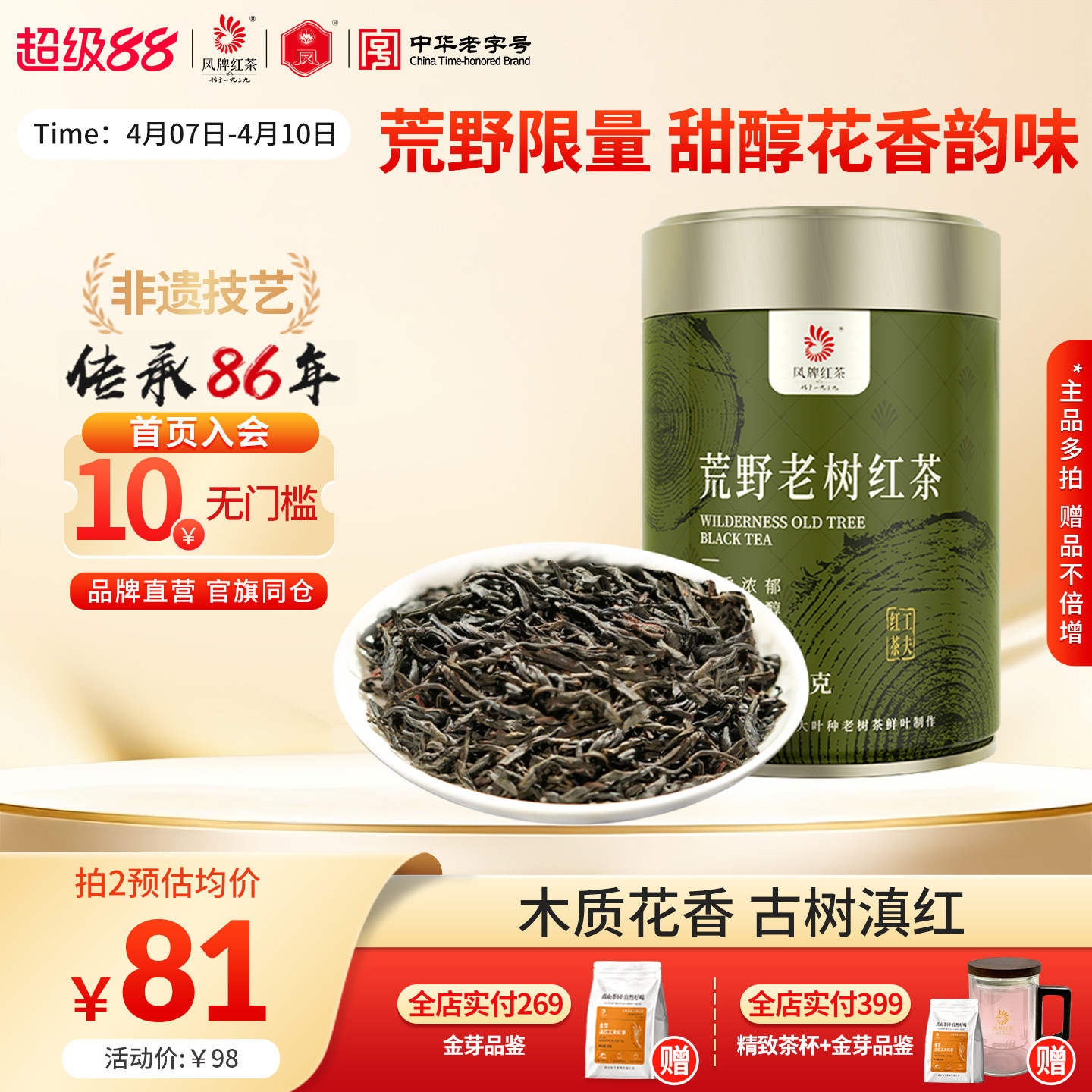 【新品】凤牌红茶云南滇红高山荒野老树100g甜醇花香特级散装茶叶