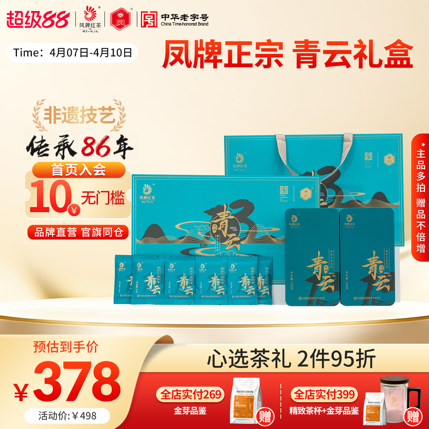 凤牌红茶正宗滇红云南茶叶青云礼盒特级浓香型200g节日送礼长辈
