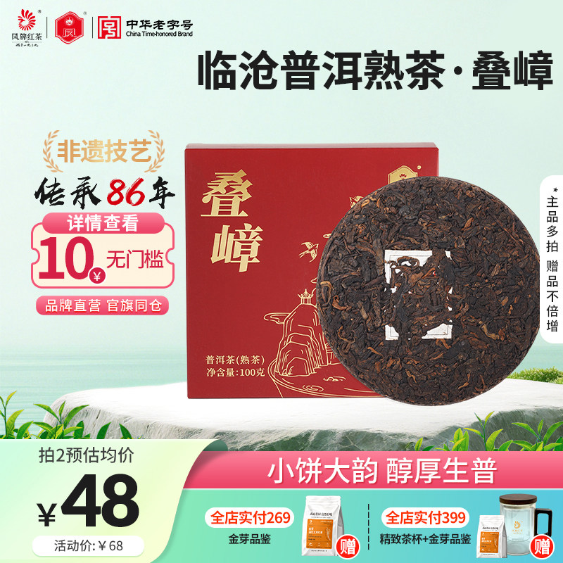 凤牌云南老字号云南高山正宗滇红叠嶂普洱茶熟茶100g普洱茶茶饼