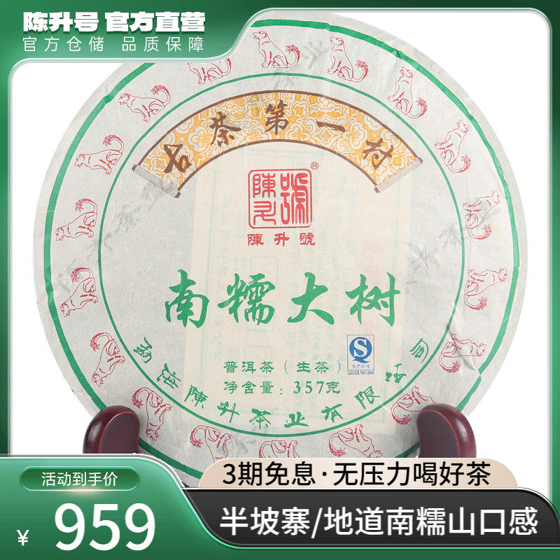 【基地春茶】2018年陈升号普洱南糯大树357g南糯山纯料普洱茶茶叶
