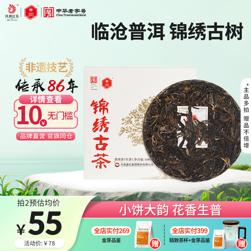 凤牌普洱云南正宗高山临沧普洱锦绣古茶普洱茶生茶100g茶饼老字号