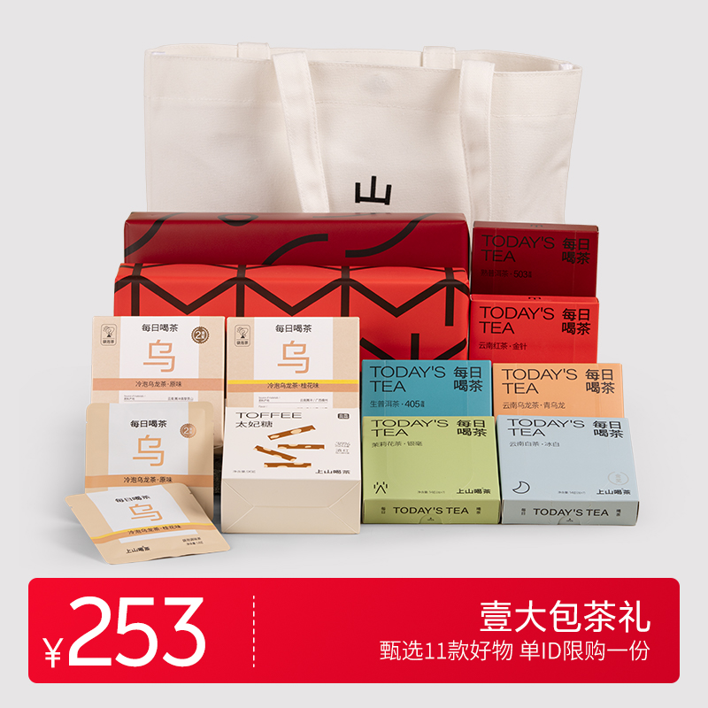 上山喝茶 壹大包茶礼礼盒 含桂花乌龙 普洱茶 红茶白茶绿茶 茶叶