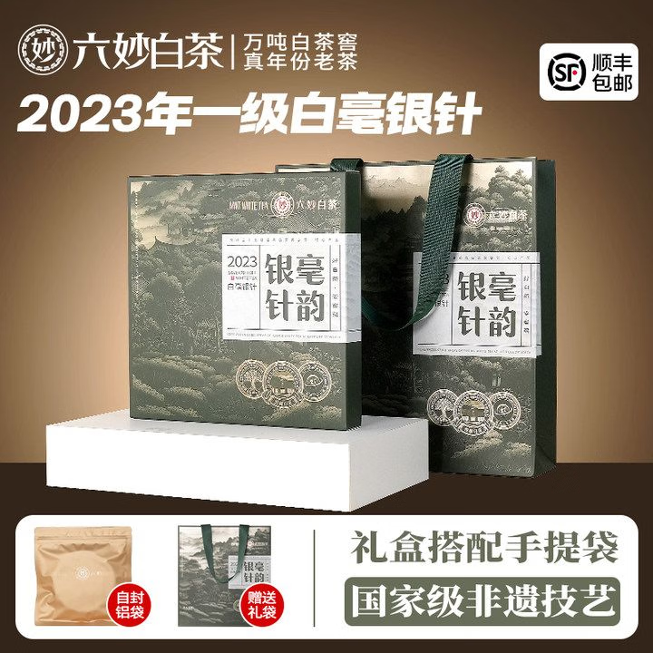 六妙白茶毫韵银针2023年一级白毫银针福鼎白茶饼茶茶叶中秋送礼伴手礼 100g*1盒