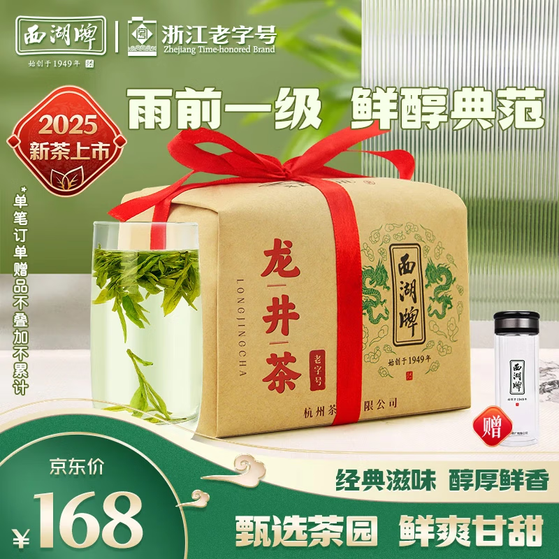 西湖牌2025新茶叶 雨前一级龙井茶叶传统纸包250g春茶绿茶自己喝送礼