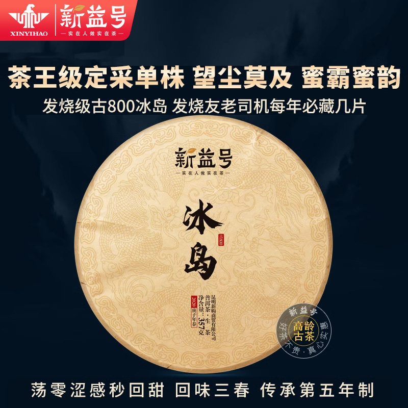 2020春茶新益号古800冰岛纯单株古树花蜜冰糖甜 普洱茶生茶饼茶叶