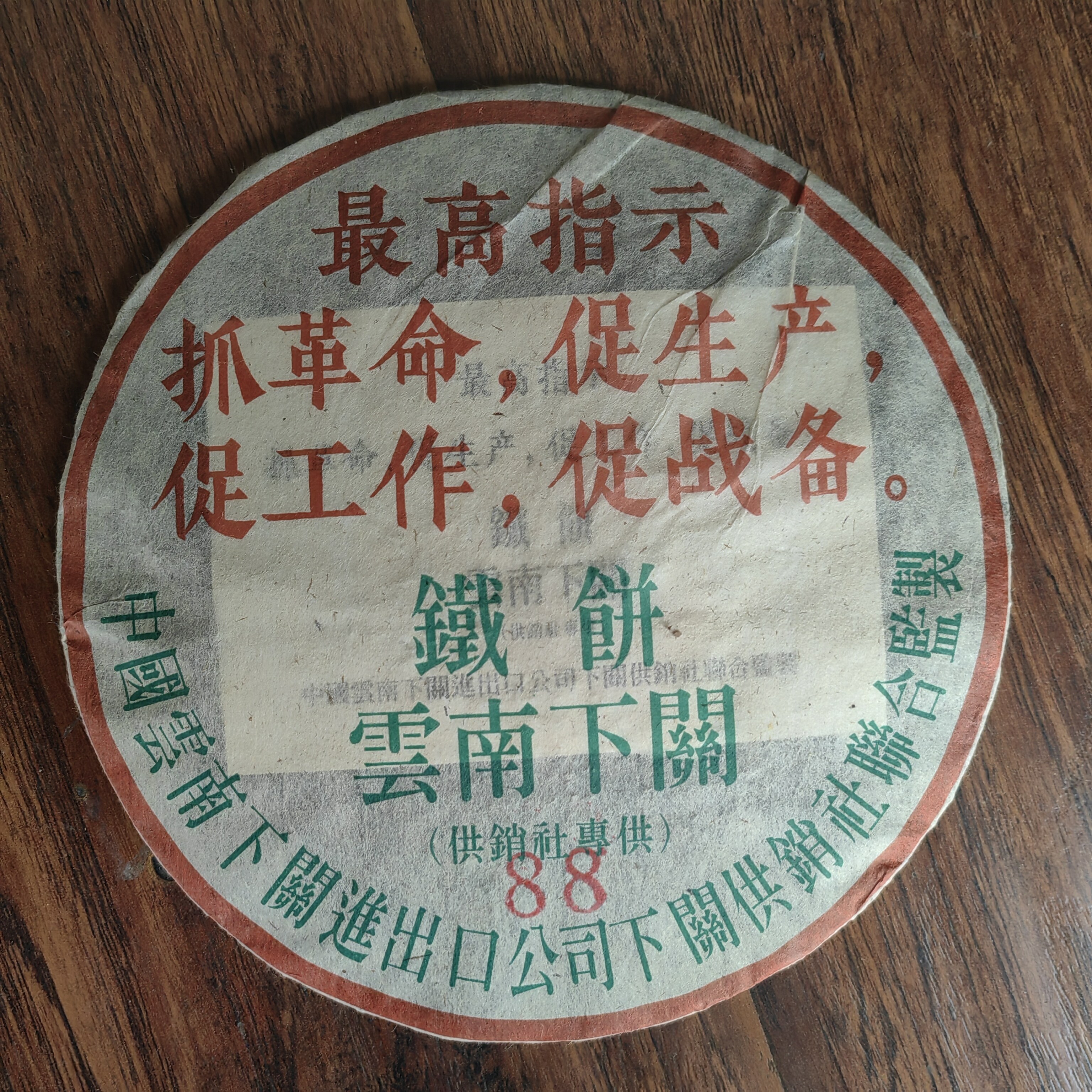 【一片】88下关铁饼普洱茶熟茶1988年普洱茶老熟茶
